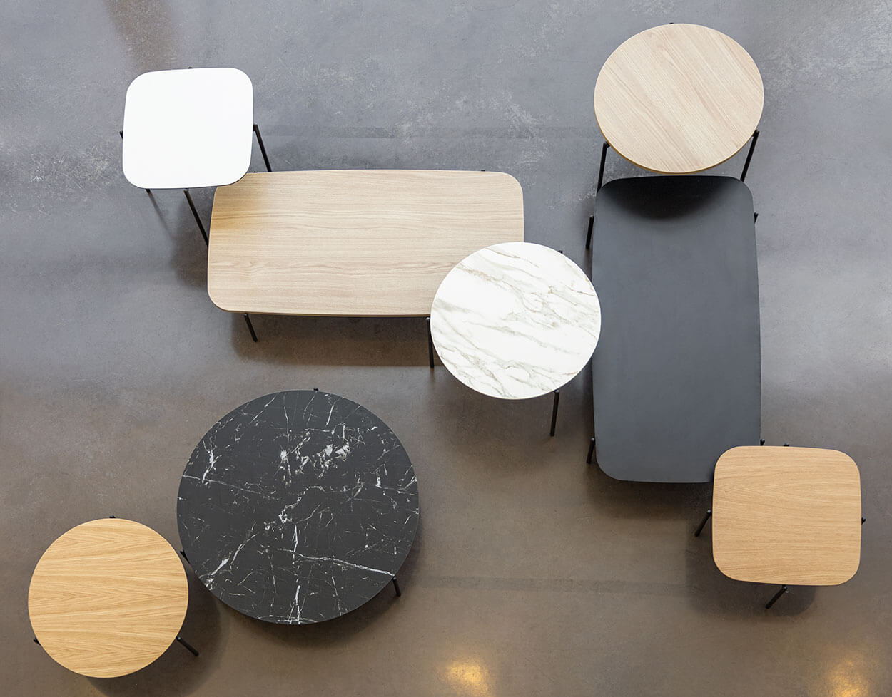 Bend range are side tables that come in different heights. They can blend perfectly within soft seating environments and spread out throughout various areas in offices.