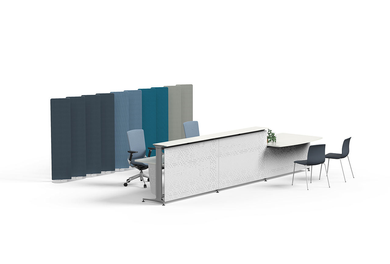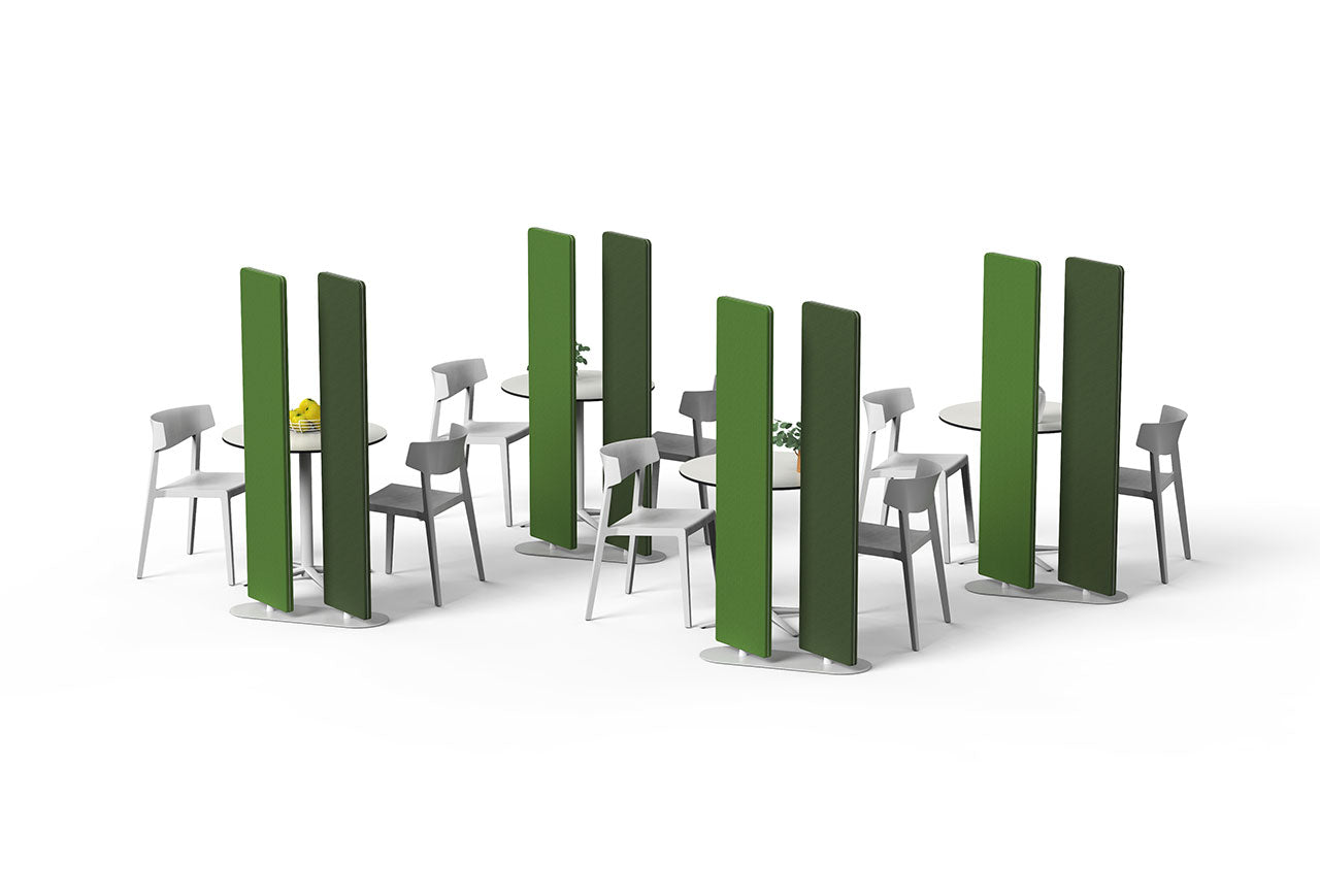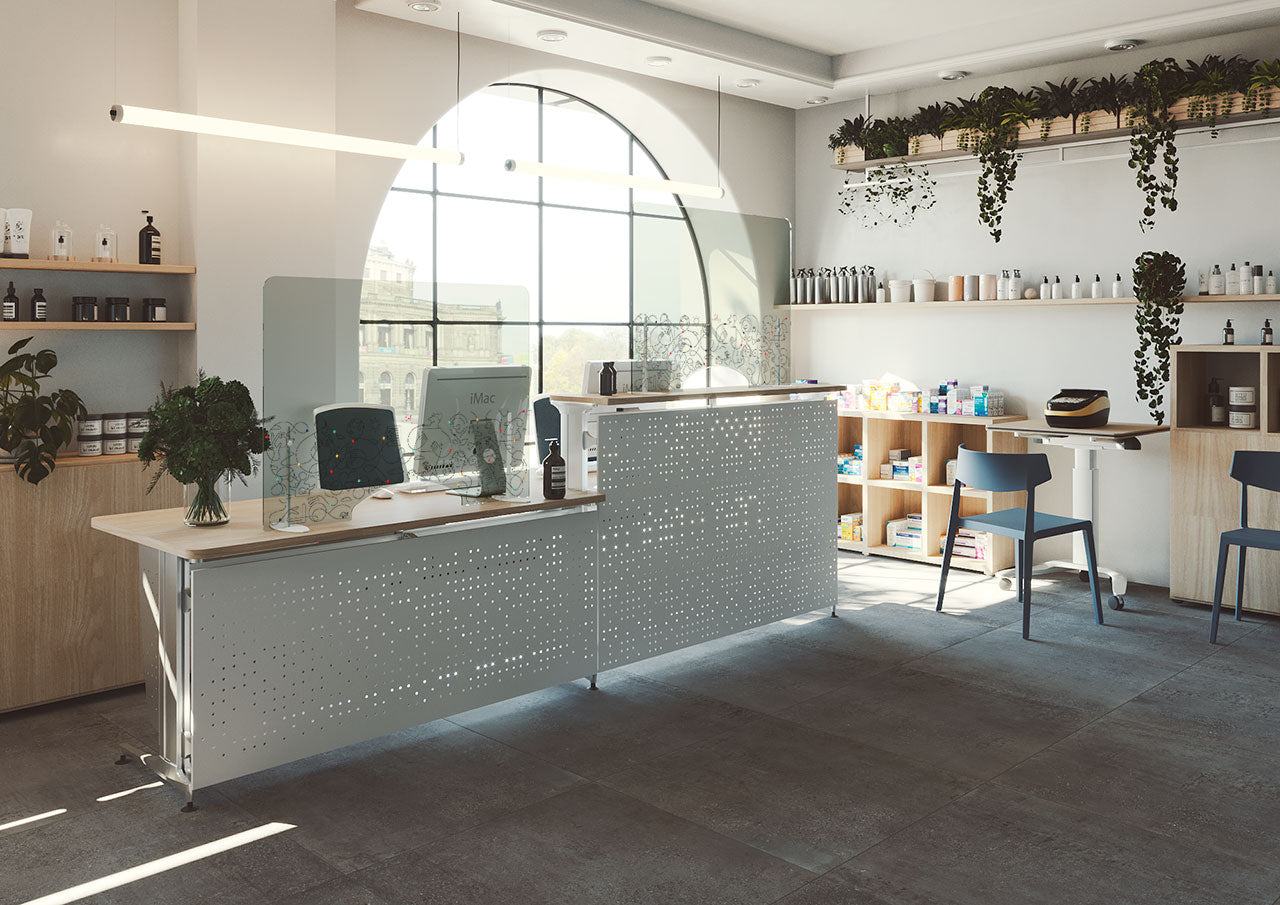 Self-supporting panels offer safety in the workspace, offering separation between users without affecting any of the interaction and visual contact that takes place between them. A versatile, stable, easy-to-assemble, and easy-to-clean solution that facilitates interactions and care management.
