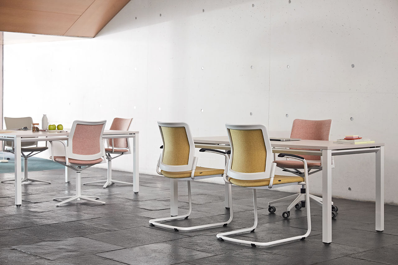 Noom stands out for its versatility and customizability. Available in a wide range of seat and frame options, from metal bases to wood, with or without casters.