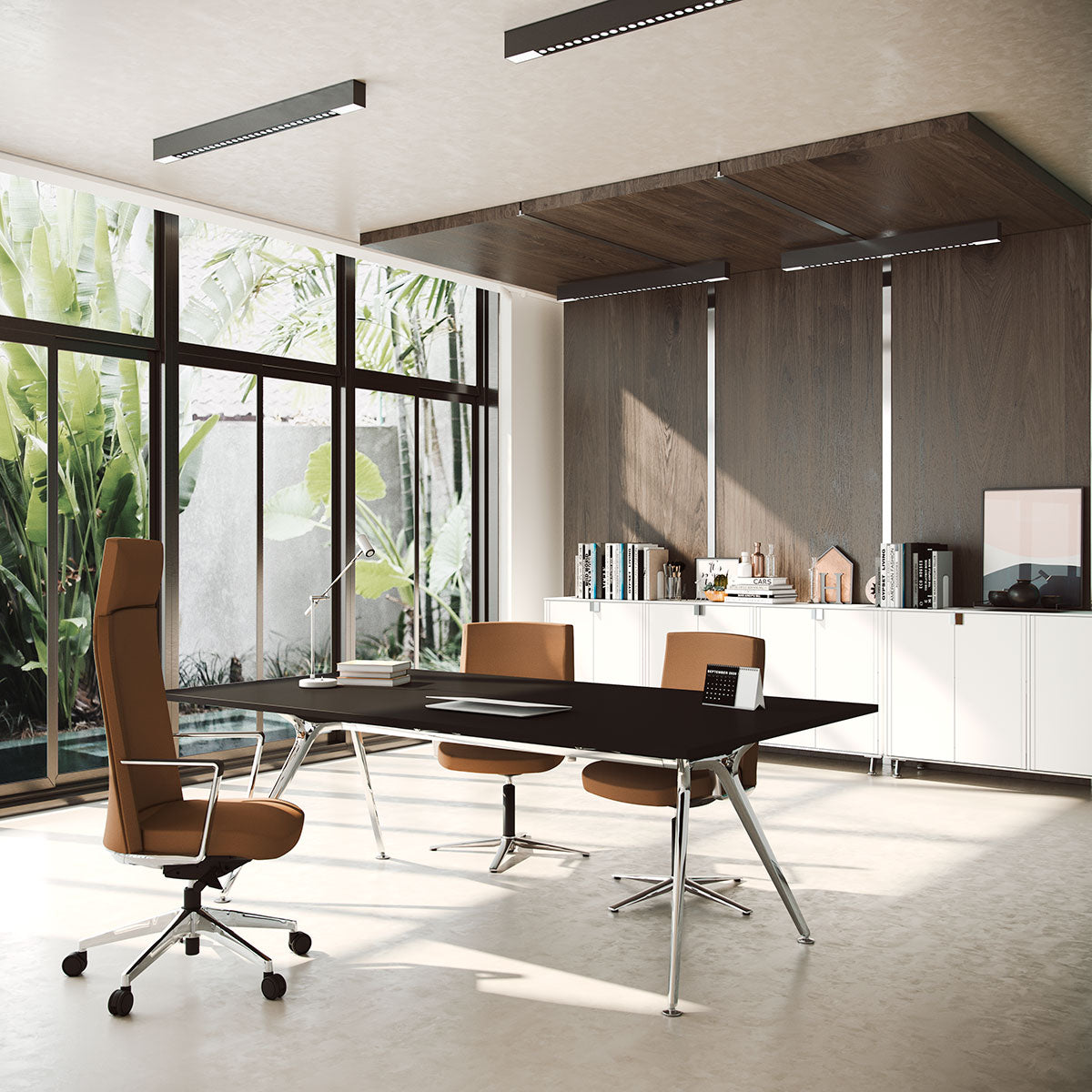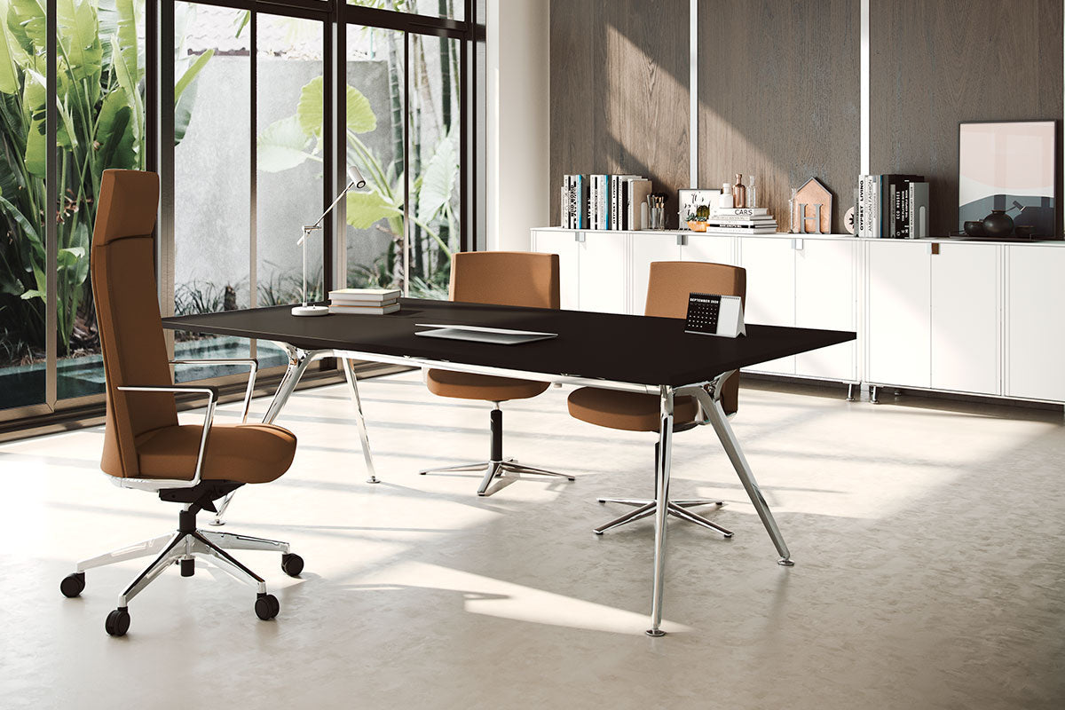 Executive and meeting tables with a unique design and top quality. A robust structure, made entirely of aluminium.