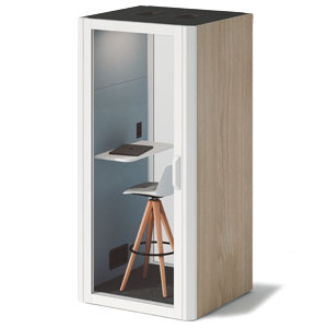 Qyos booths offer multiple configuration possibilities by combining different materials, finishes and colours.