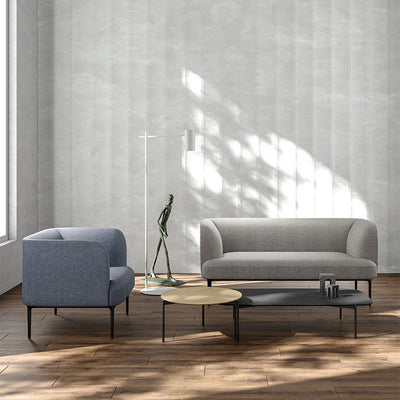 With its oak or fabric effect exterior and softly upholstered interior. This collection offers a complete range of products designed to meet the needs of contemporary spaces, single, double, triple sofas and benches.