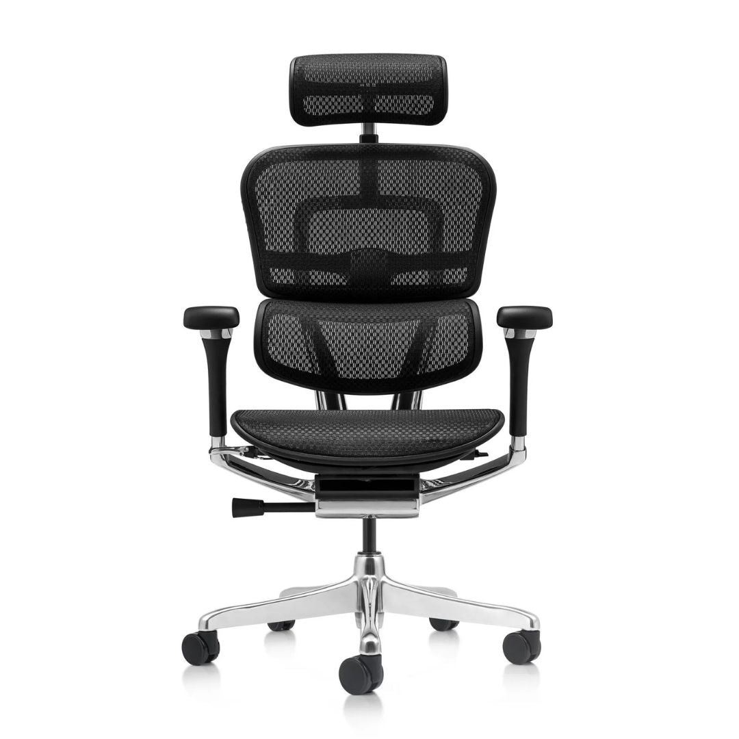The Ergohuman office chair combines advanced ergonomic features with cutting-edge design. With adjustable lumbar support, armrests, headrest, and fold-out legrest options, it offers superior comfort for intensive use.