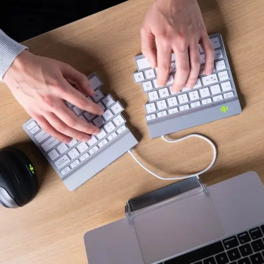 The R-Go Split keyboard consists of 2 separate parts that you can use in any desired position. So you can always type with straight wrists and prevent oppressing tendons and blood vessels. This ergonomic split keyboard can be turned into a compact keyboard with 1 move using the built-in magnet.