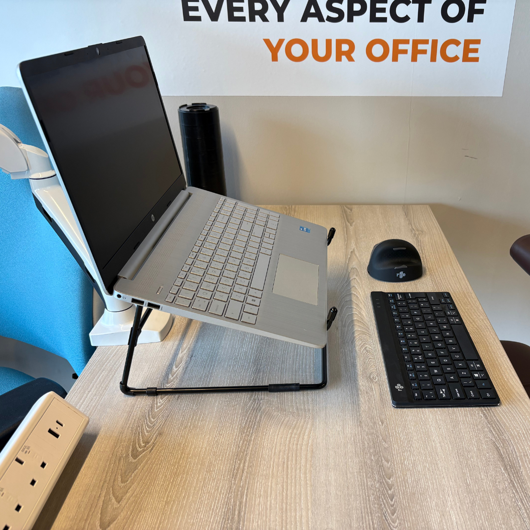 The R-Go Office Laptop Stand is ideal for the fixed workstation. This laptop stand brings your laptop to a comfortable viewing height, allowing you to work in an upright posture and prevent slouching to look at your screen.